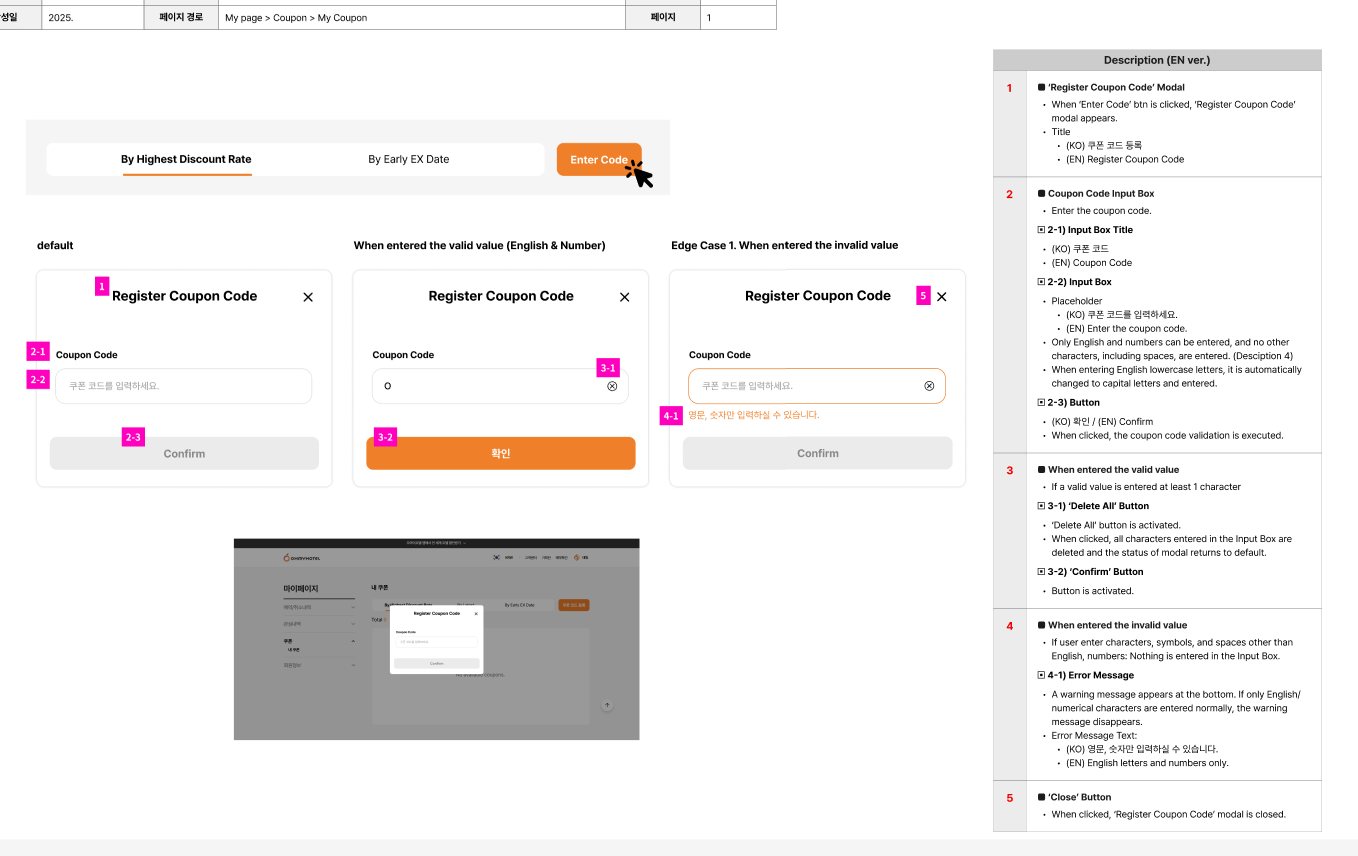 About the feedback number 7, the feature we use the same for register coupon on Payment page and My page