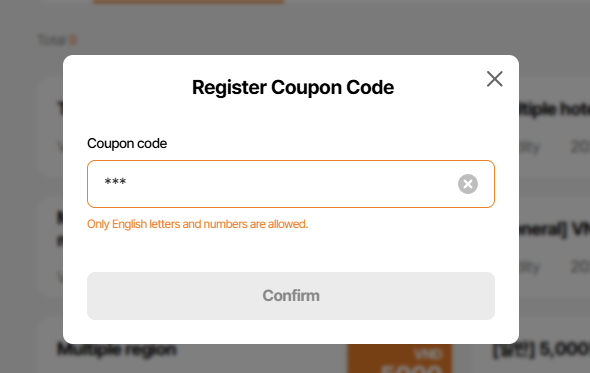 7. Coupon has registered but when enter code, alert save success is displayed