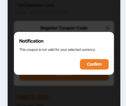 7. Coupon has registered but when enter code, alert save success is displayed