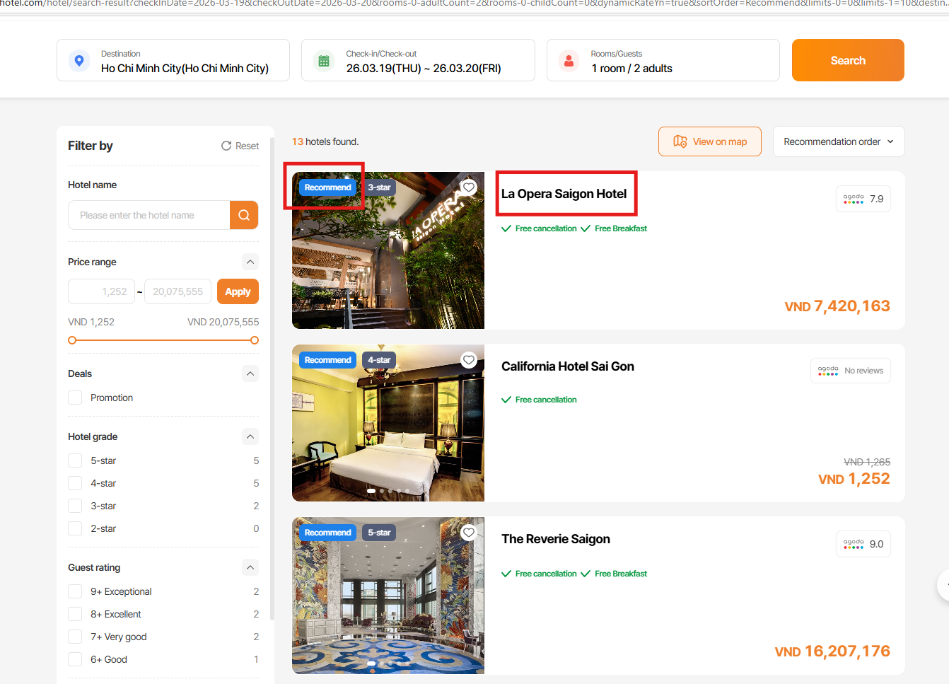 Current hotels have Recommend label => ok