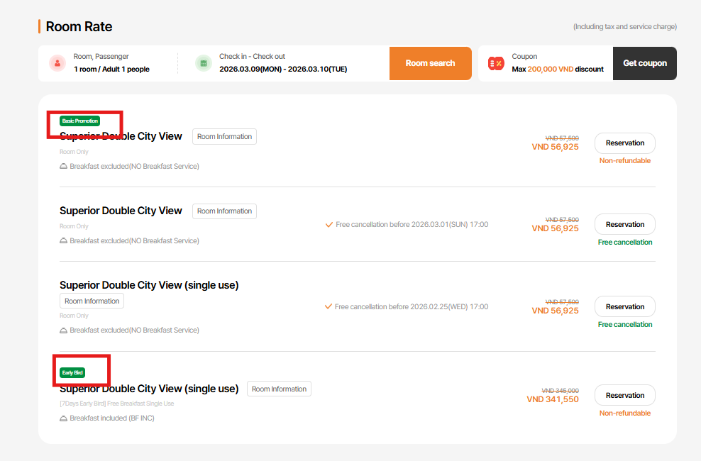 3. If the rate at 2-2 includes a promotion, display its name; otherwise, leave it blank.