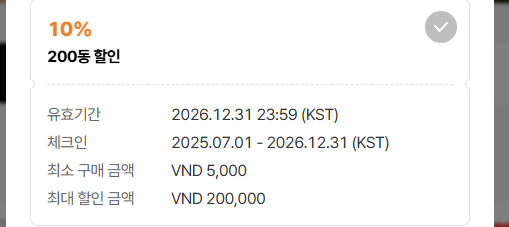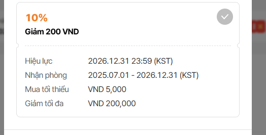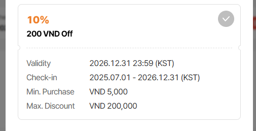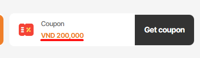 3. Max discount: Should show <currency> 200,000 (e,g, VND 200,000) => The discount will be displayed in orange