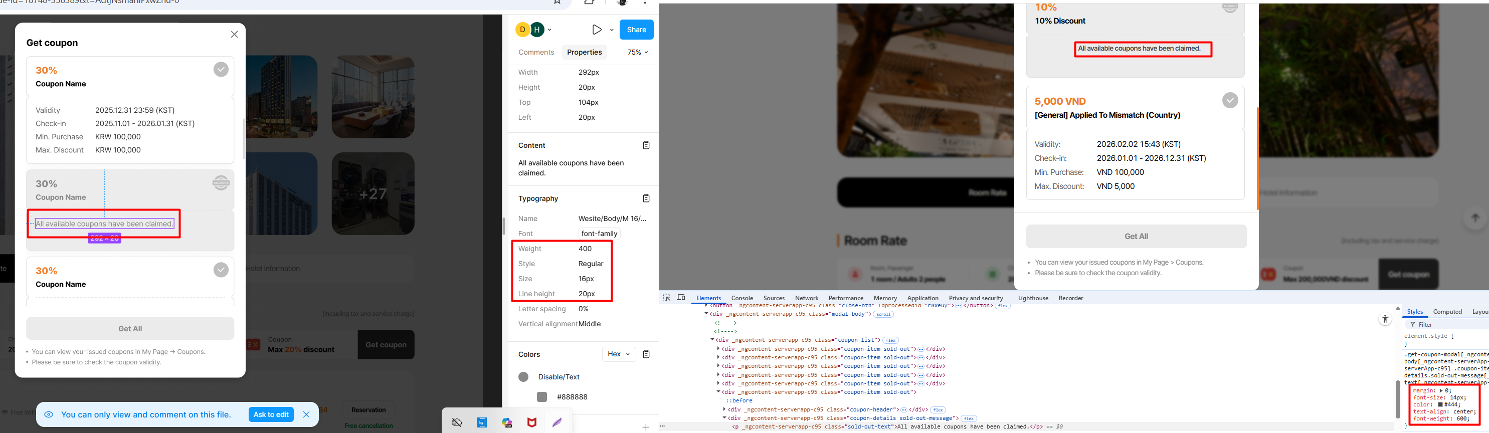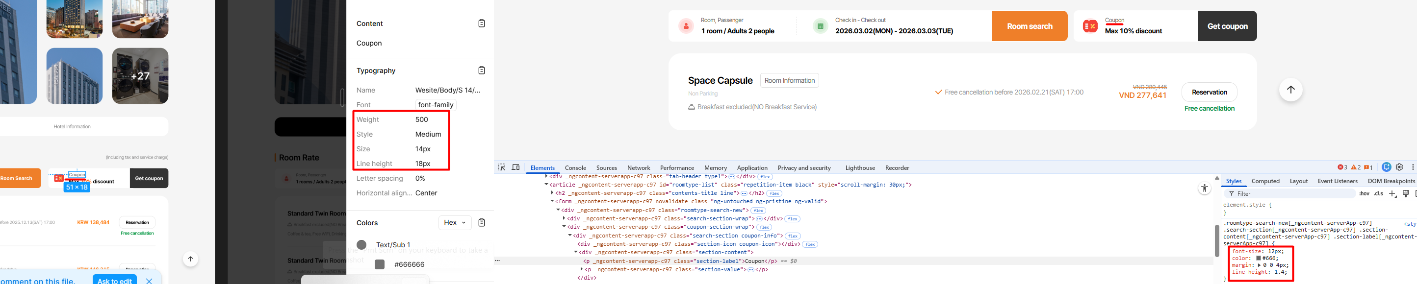 1. Coupon: Font-size: 14px and add font-weight: 500