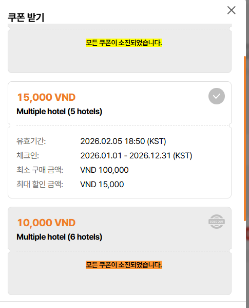 as is: 모든 쿠폰이 소진되었습니다.