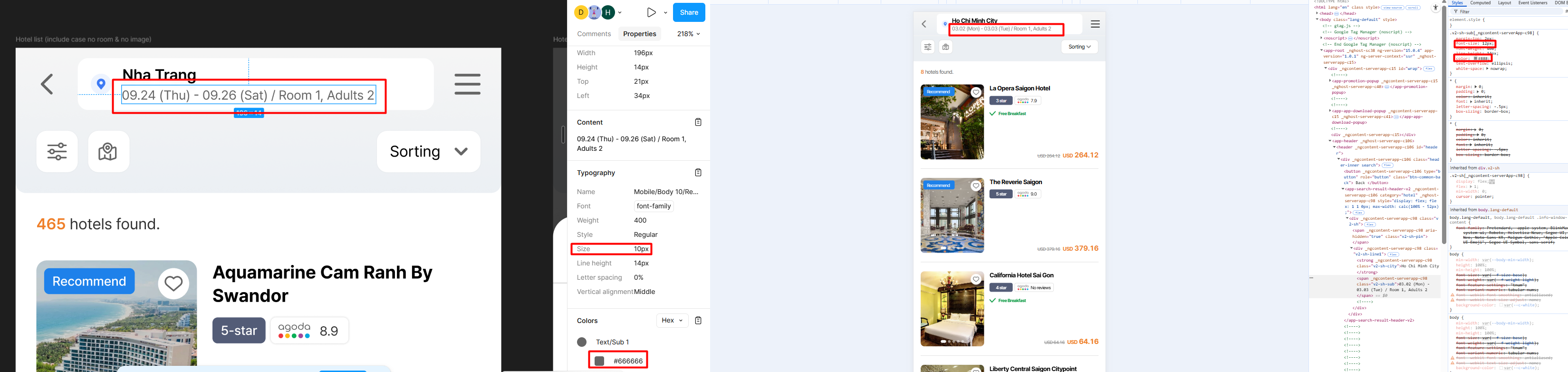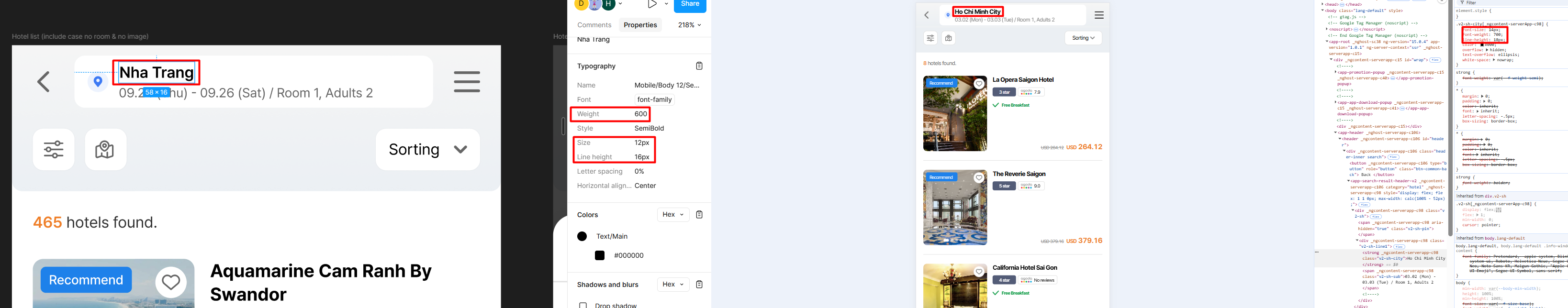 1. Hotel name: font-weight: 600; font-size: 12px; line-height: 16px;