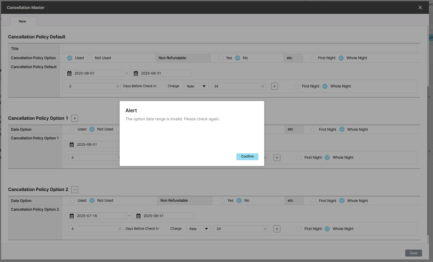 Actual result: Alert "The option date range is invalid. Please check again."