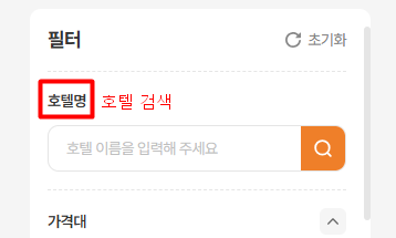 21. Display '호텔 검색' intead of '호텔명' (Translate: Hotel name)