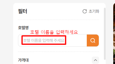 22. Placeholder displays '호텔 이름을 입력하세요' intead of '호텔 이름을 입력해 주세요'