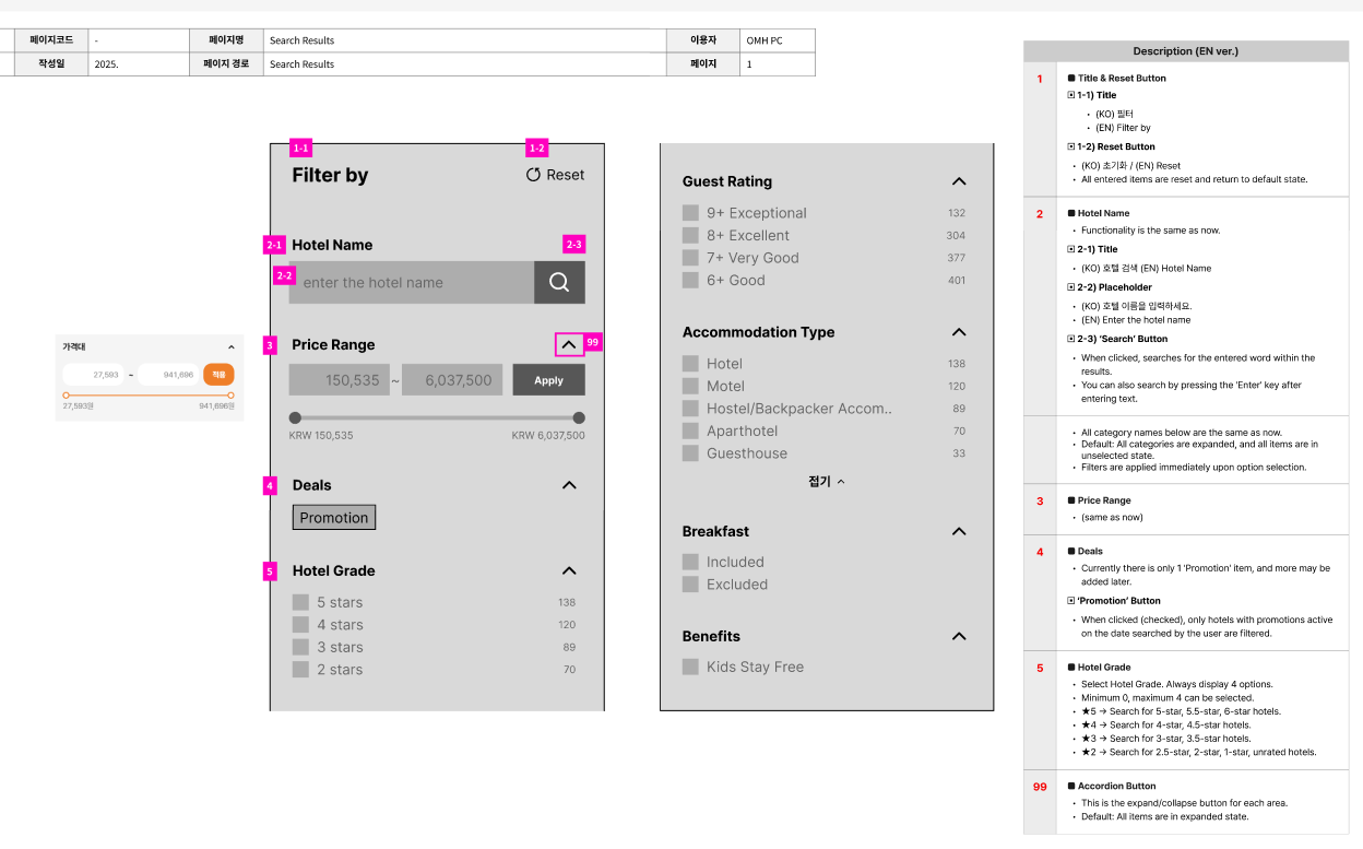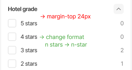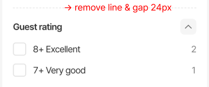 26. Remove line & gap 24px below Price range, Deals, Hotel grade, Guest rating, Accommodation type, and Breakfast sections as design