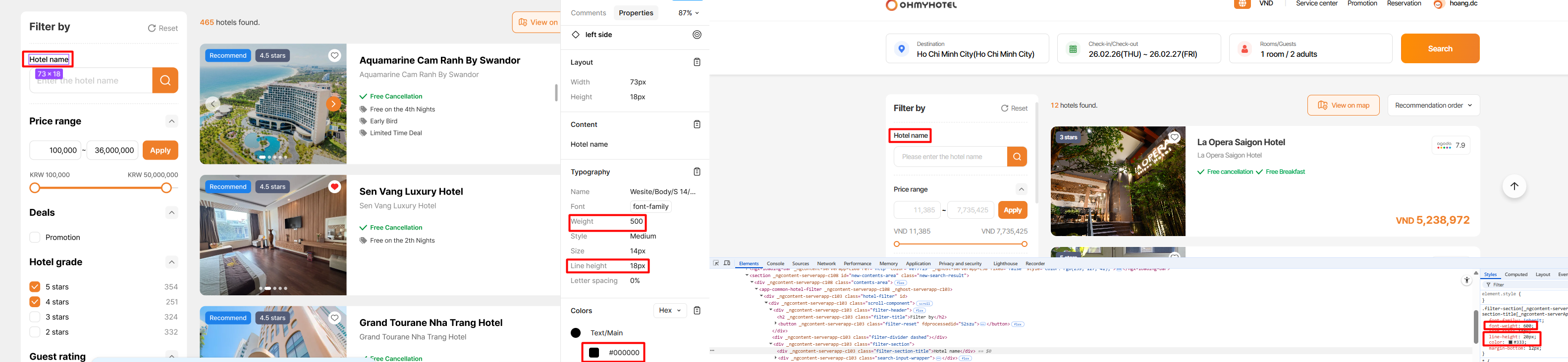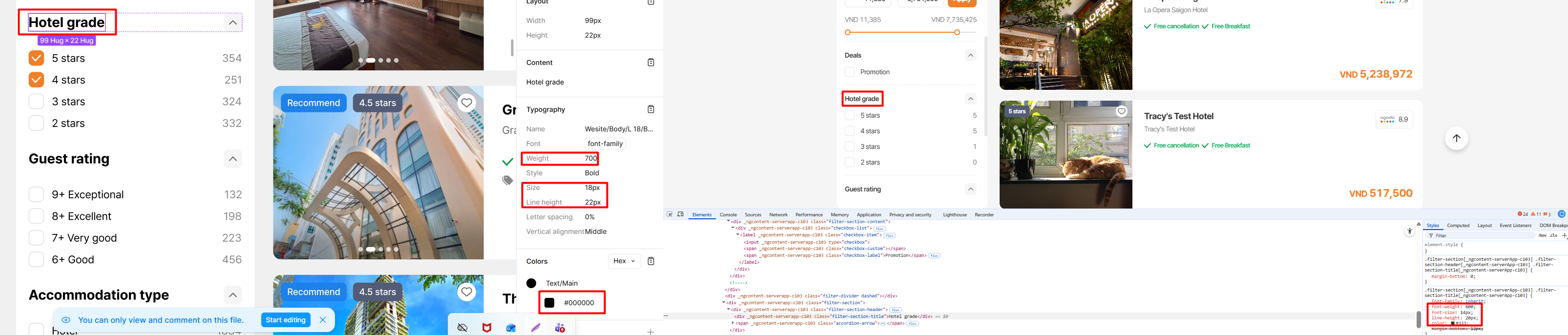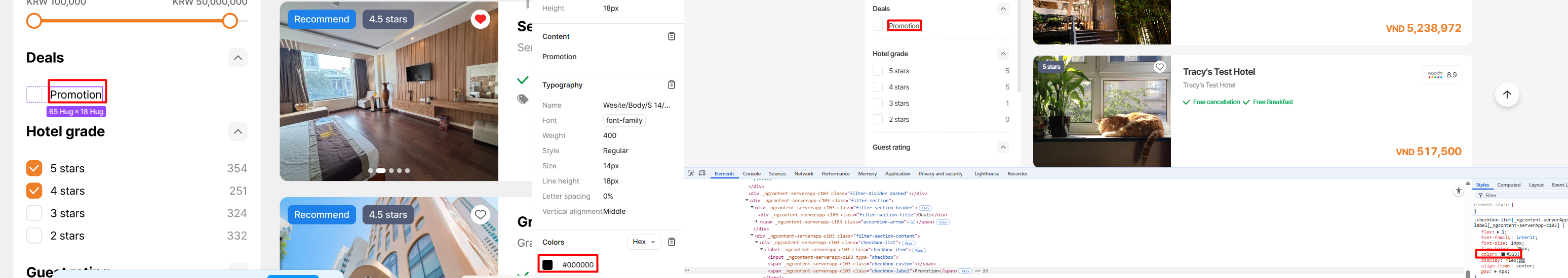 2. Hotel name: font-weight: 500; line-height: 18px; color: #000000;