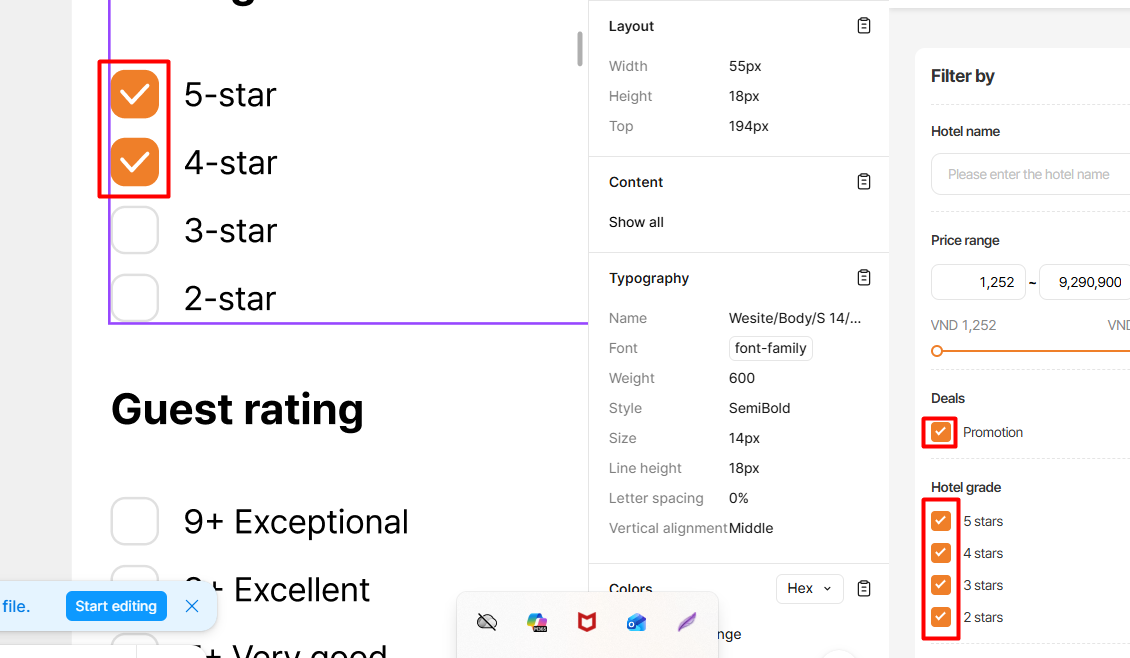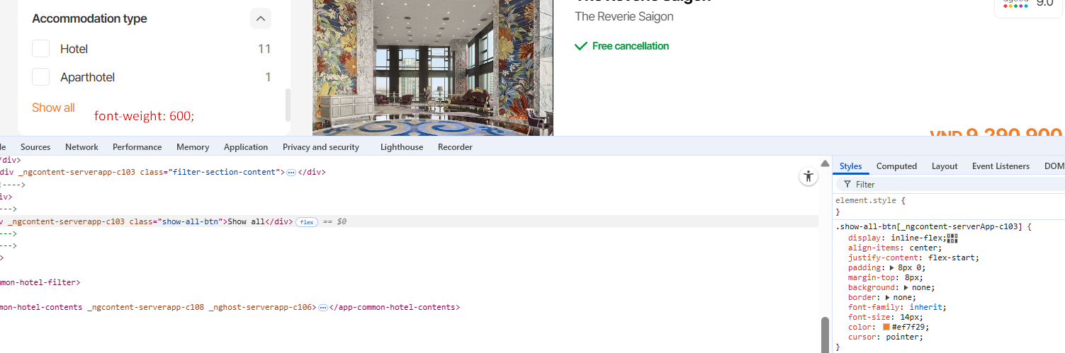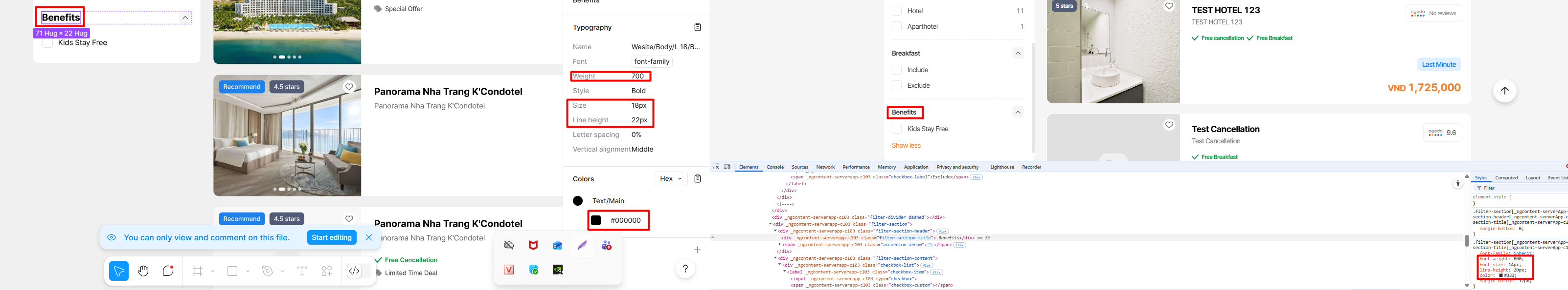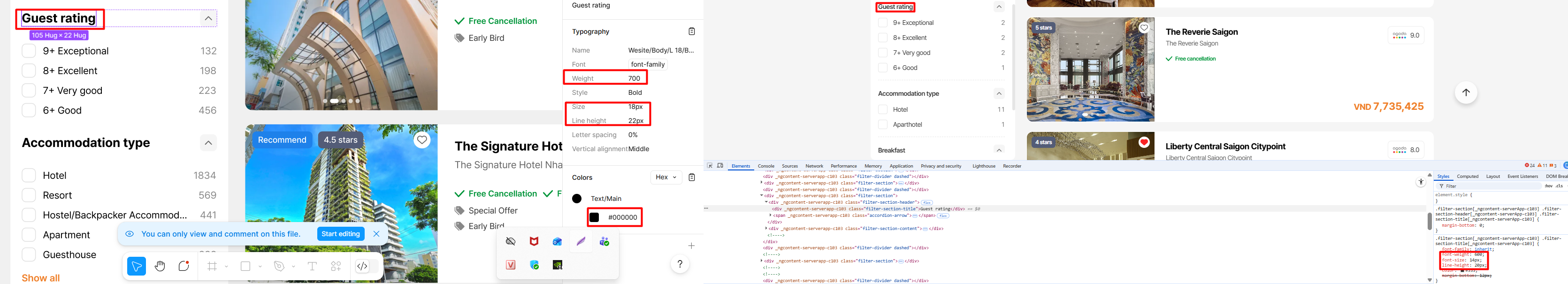2. Hotel name: font-weight: 500; line-height: 18px; color: #000000;