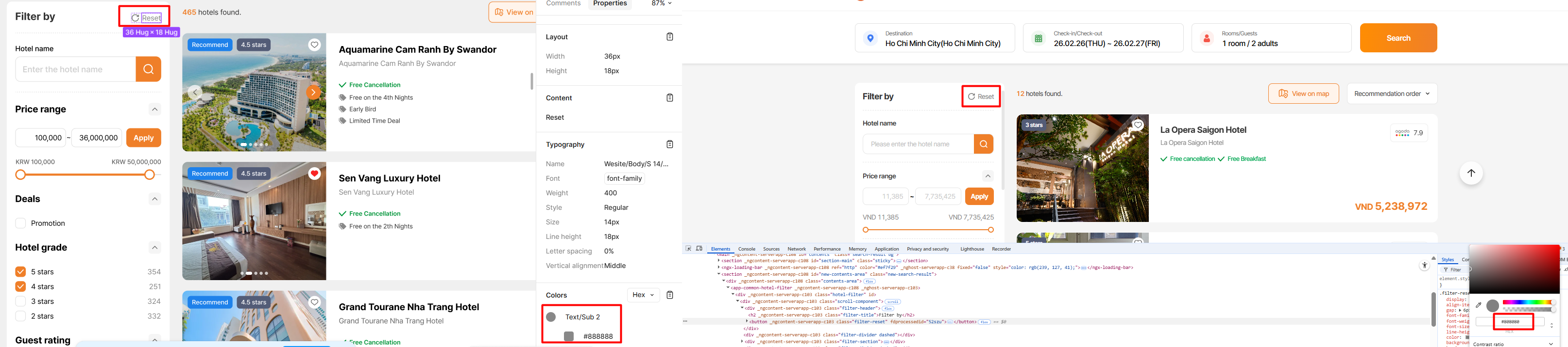 32. Steps to reproduce: Search Ho Chi Minh, 26.03.25 ~ 26.03.26 => Select 5 and 4 stars in Hotel grade section => Click Reset