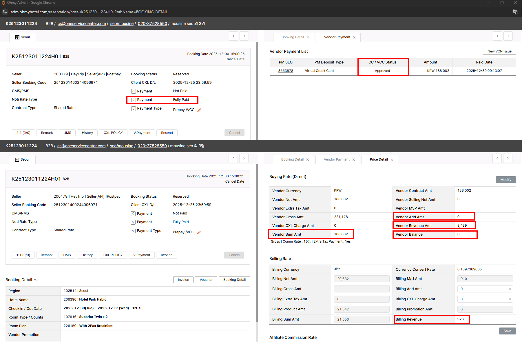 [URGENT!] Please amend the buying rate K25123011224H01 // Hotel Park Habio