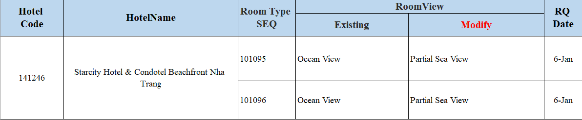 Please kindly assist to change the ROOM VIEW of 141246 - Starcity Hotel & Condotel Beachfront Nha Trang.