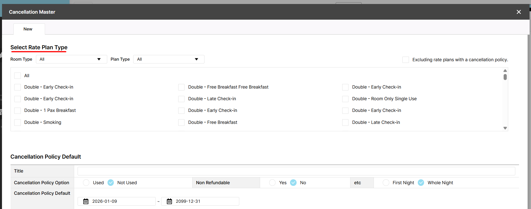 Expected Result: New tab opens with text "Select Rate Plan Type"