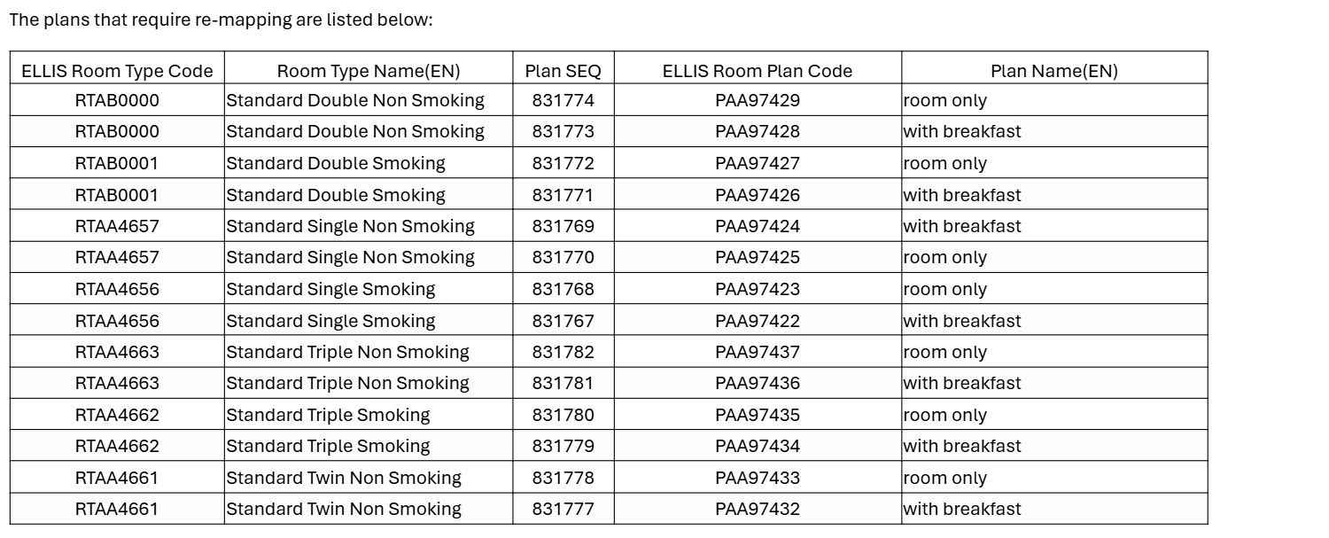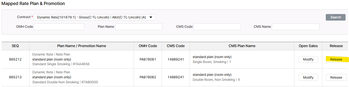 While removing unnecessary plans for this hotel 332116 - Osaka Tokyu REI Hotel using the Release button (as shown in the screenshot below), I accidentally released the mappings for some plans that should not have been disconnected.