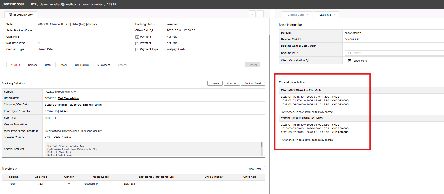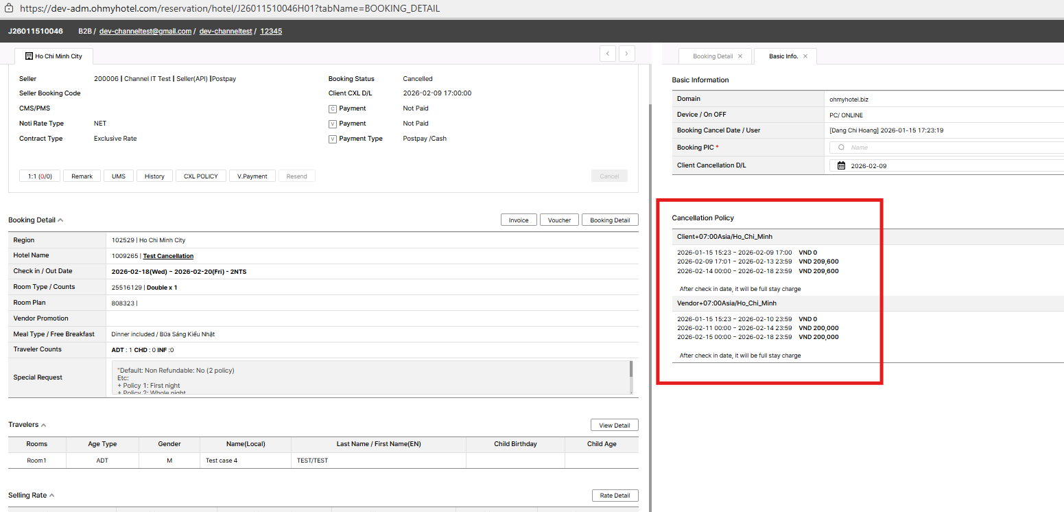 => CXL details displayed on both booking not divided 1st night/ whole night charge. Only displayed 1st night charge