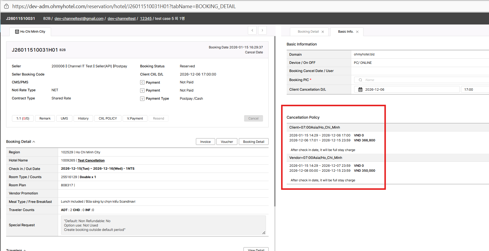 Made booking test on DEV env - J26011510031H01 (check in 2026-12-15)