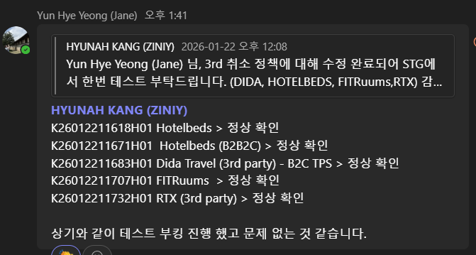 상기와 같이 테스트 부킹 진행 했고 문제 없는 것 같습니다.