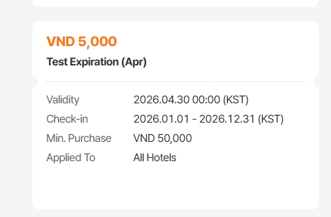 - Subject changed from [DEV] Inconsistent coupon card UI on My coupon page & Payment page to [DEV] Inconsistent information displayed on coupon card on My coupon page & Payment page