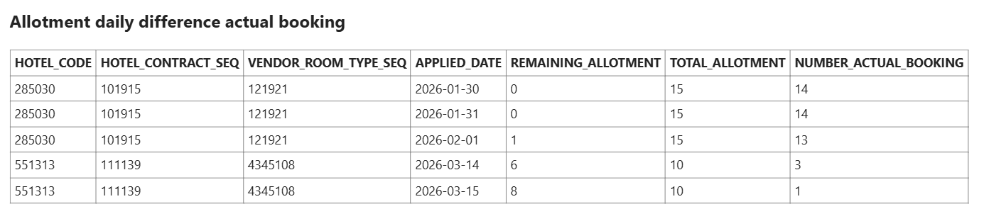 I could not provide the exactly number of remaining allotment due to it may change after i create this task as the booking keep occurring.