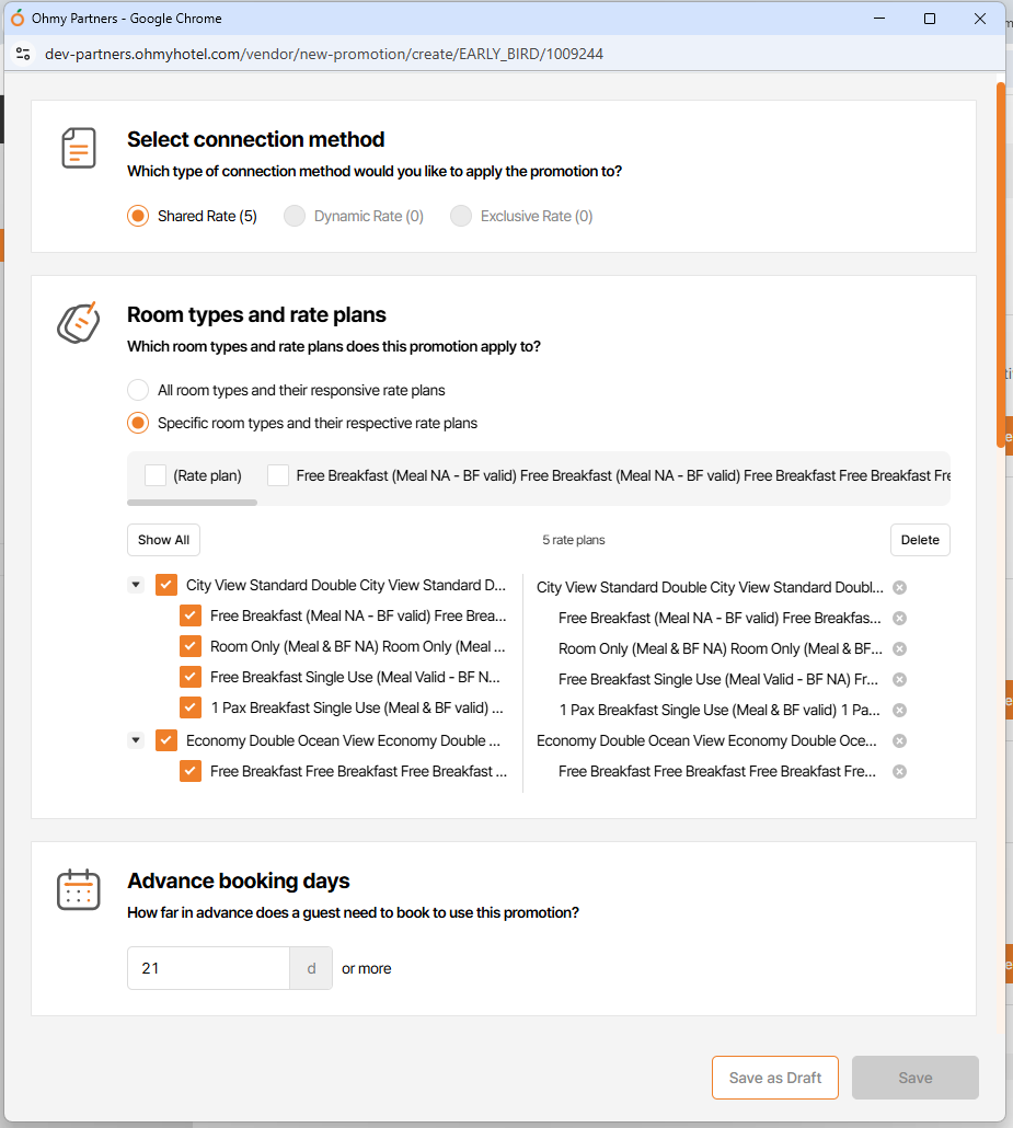 Actual: The room type and rate plan displayed on the user interface is malfunctioning