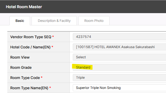 Could you please change the grade of this room type for the property from Standard to Superior?