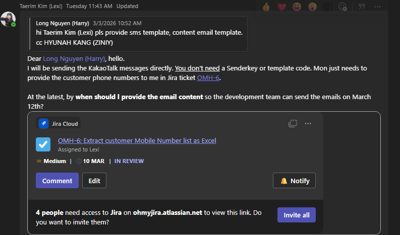 About sms, kakao talk : Lexi will manual send this, dont need to auto sent by system
