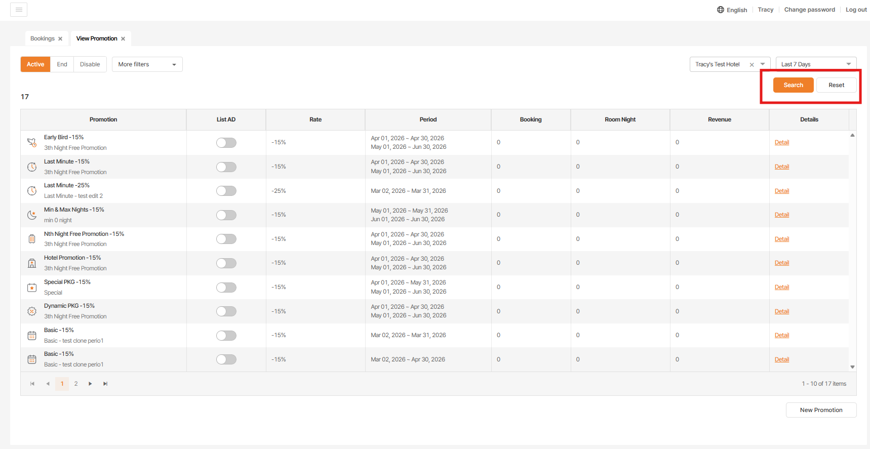 *Note: when user stay on Active tab - use filter & click seacrh, promotions that match with selected filter show on list. After that, unselect all filter, search & reset button is hidden so user need to click again on Active tab to reload page (as attached video)