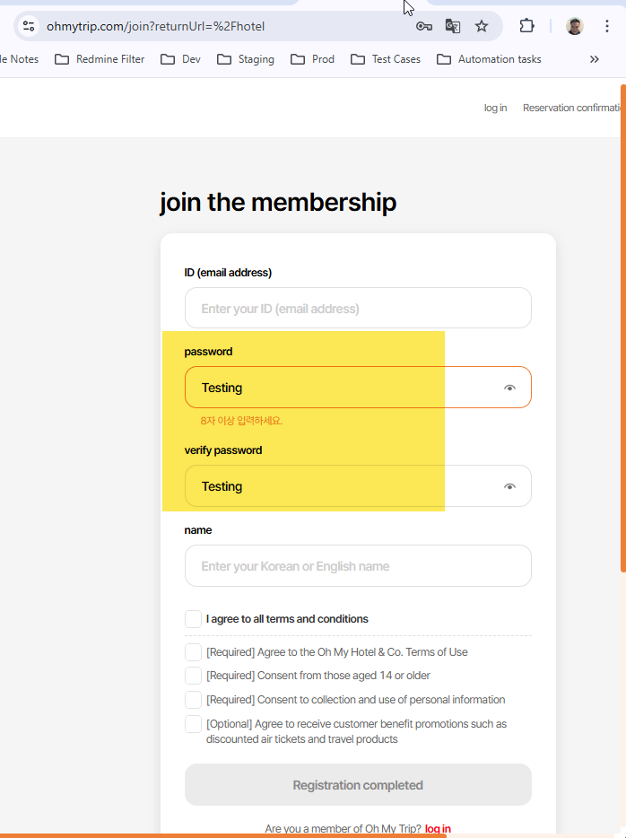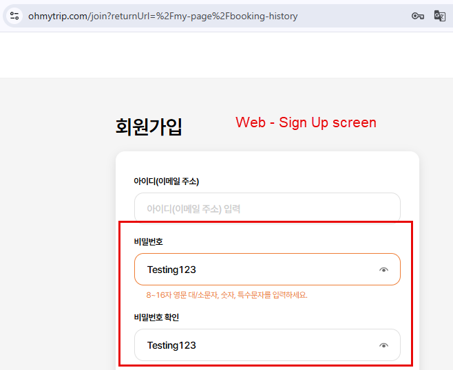 - Check eye icon displayed well in Sign Up screen and user can see their password after click on from web -> Passed