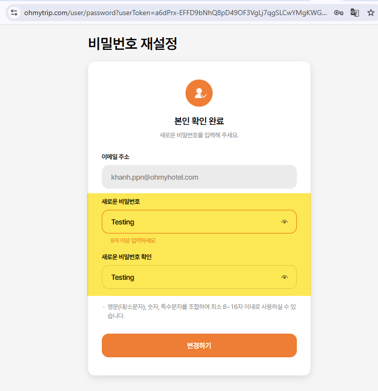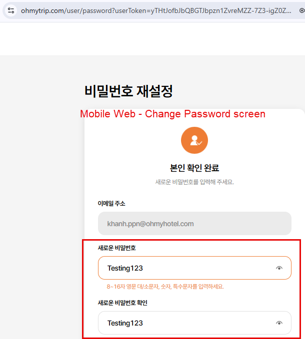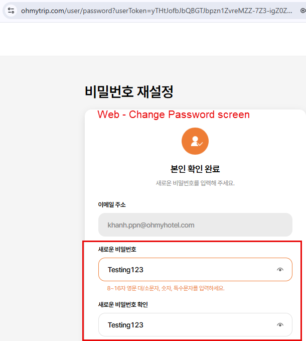 - Check eye icon displayed well in Change Password screen and user can see their password after click on from web -> Passed