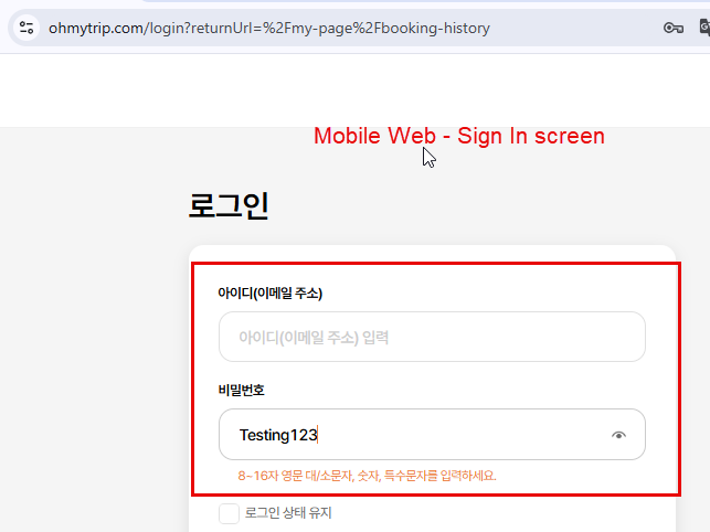 - Check eye icon displayed well in Sign In screen and user can see their password after click on from mobile web > Passed