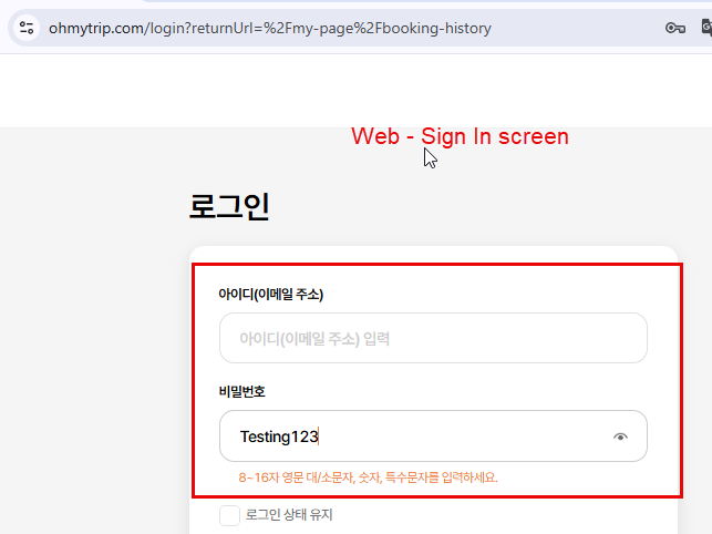 - Check eye icon displayed well in Sign In screen and user can see their password after click on from web -> Passed