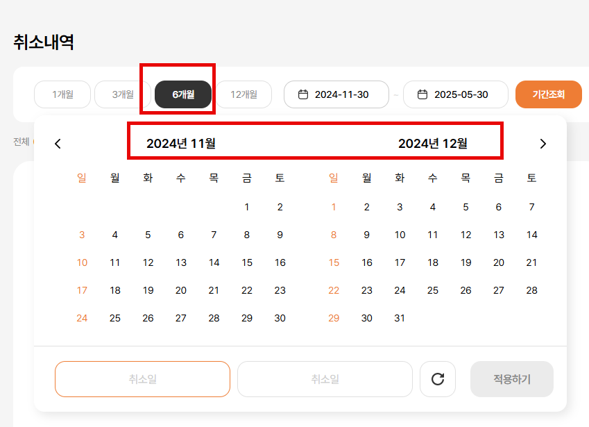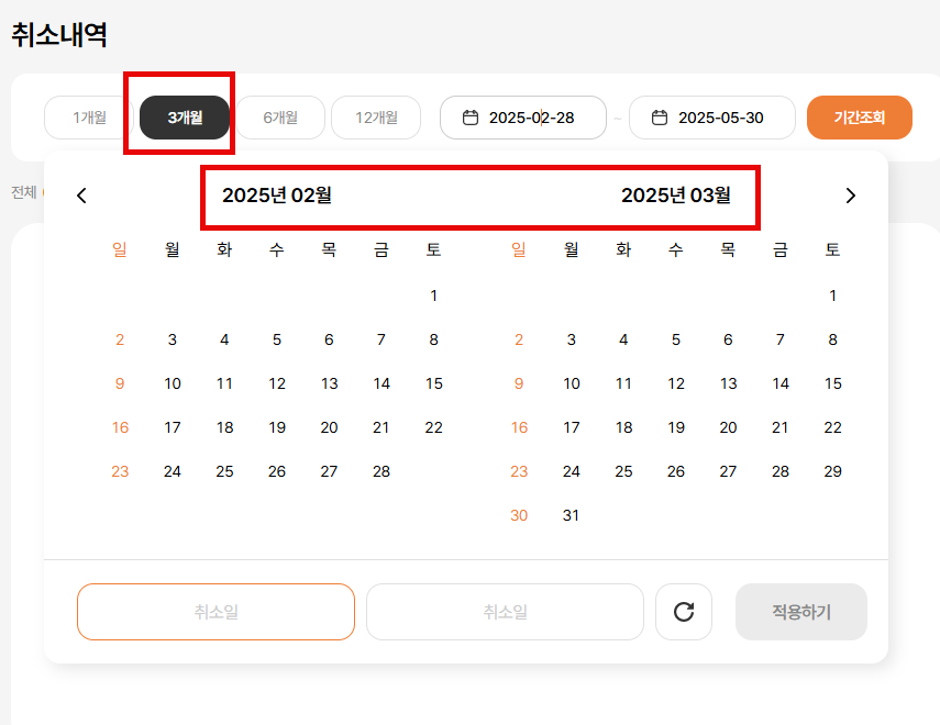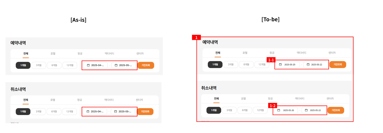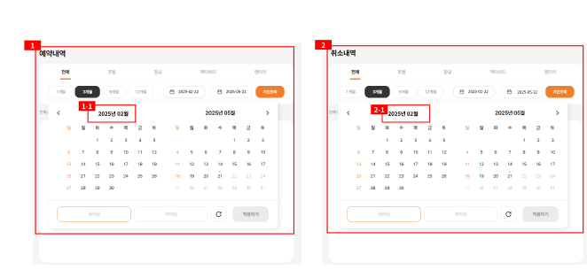 메인 > GNB > 예약 확인 > 예약/ 취소내역 확인 > 예약/취소내역 날짜 기간 노출 개선