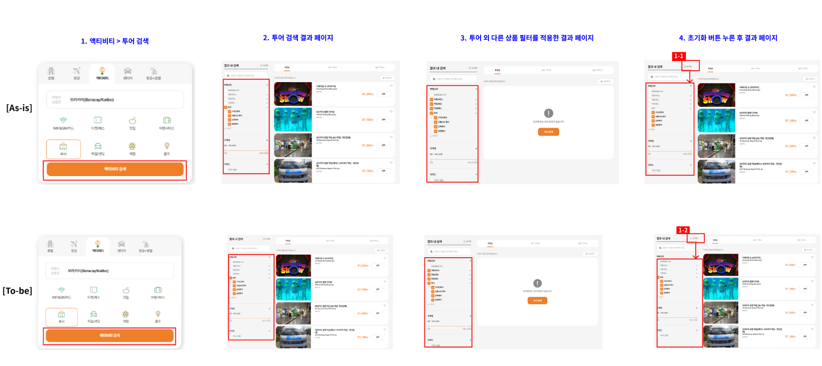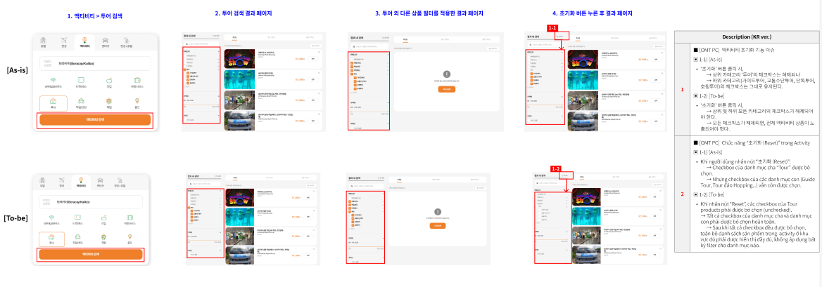 - Khi nhấn nút “Reset”, các checkbox của Tour products luôn được giữ trạng thái được chọn (checked).