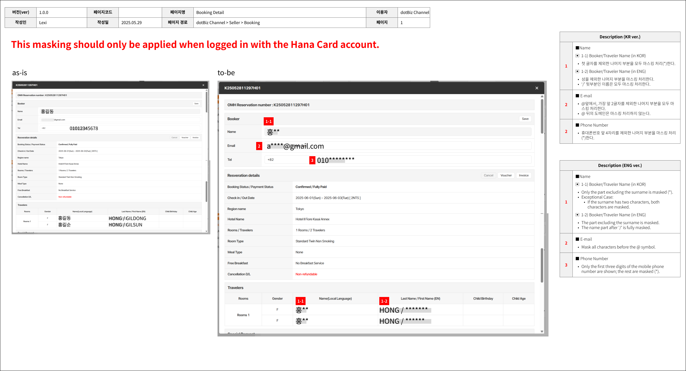 - Copied from 개선(improvement) #420: [Plan/dotBizChannel] Personal information should be masked with HanaCard account. added