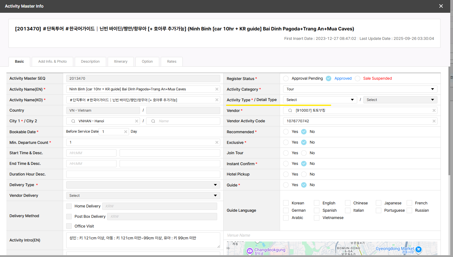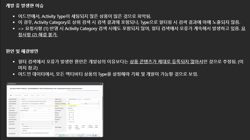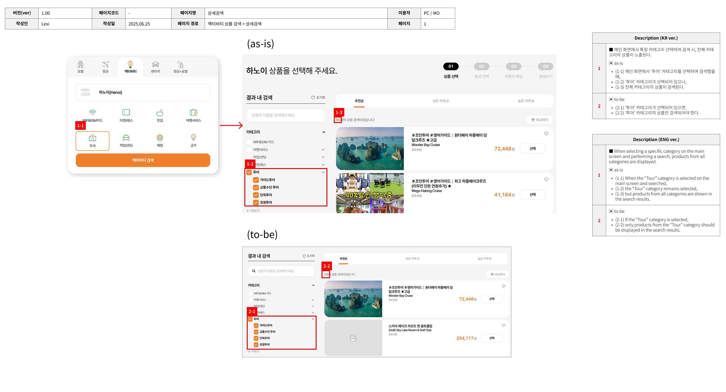 (Example) There are 67 active tour products for Hanoi registered in the admin. In the first screenshot, when searching for Hanoi > Tour on the main page, 66 products are displayed. However, after unchecking all the checkboxes and then checking ‘Tour’ again, only 3 products are shown.