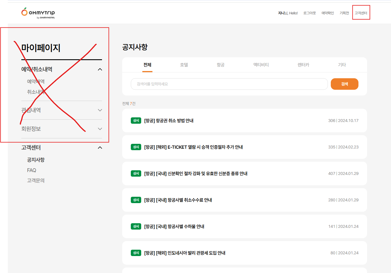 1-2) Khi click vào nút “고객센터 (Customer service center)”,