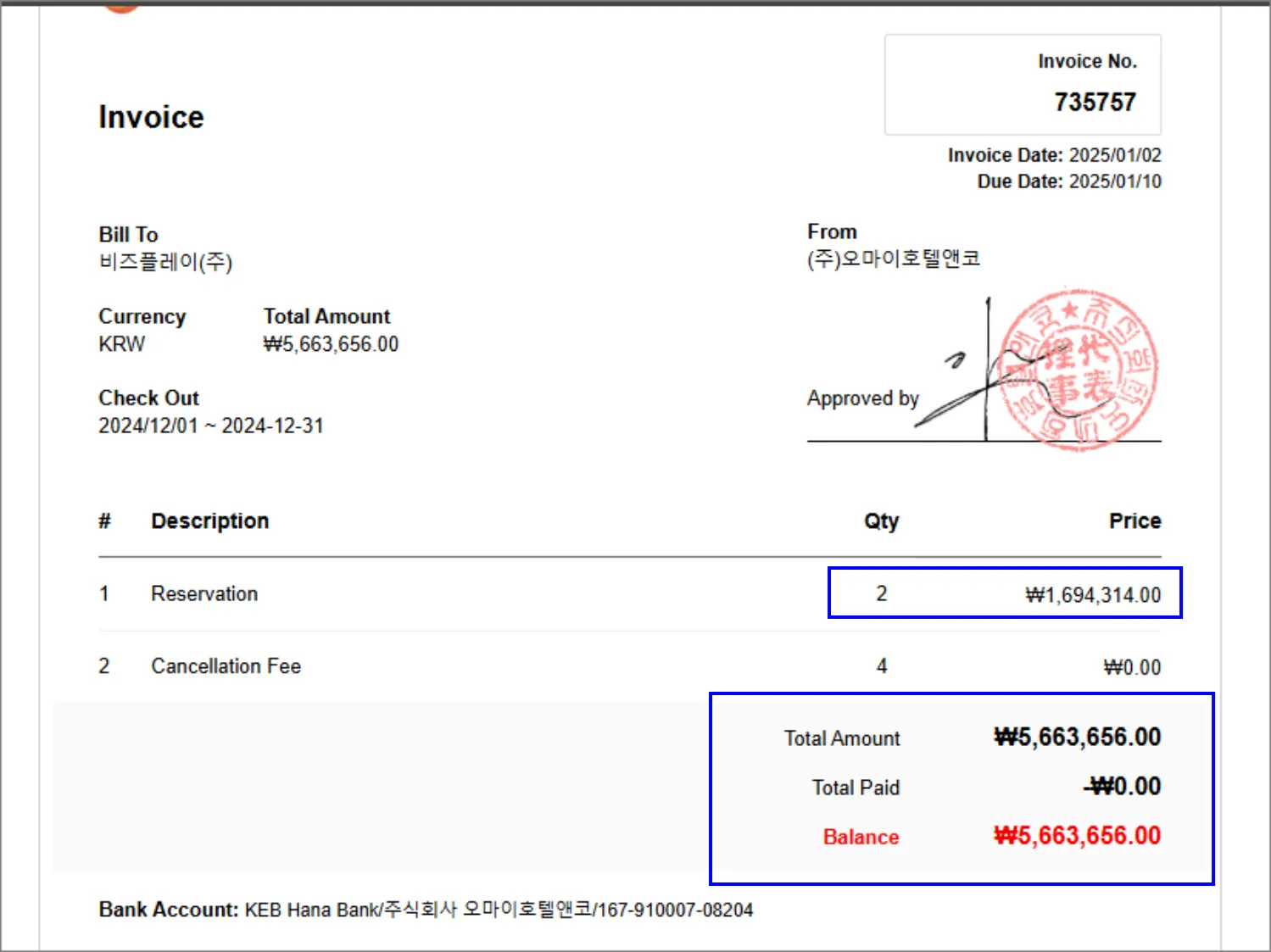 Cancel booking -> update invoice/billing (nếu cancel có thay đổi giá vendor sum amount hoặc billing sum amount)