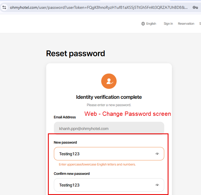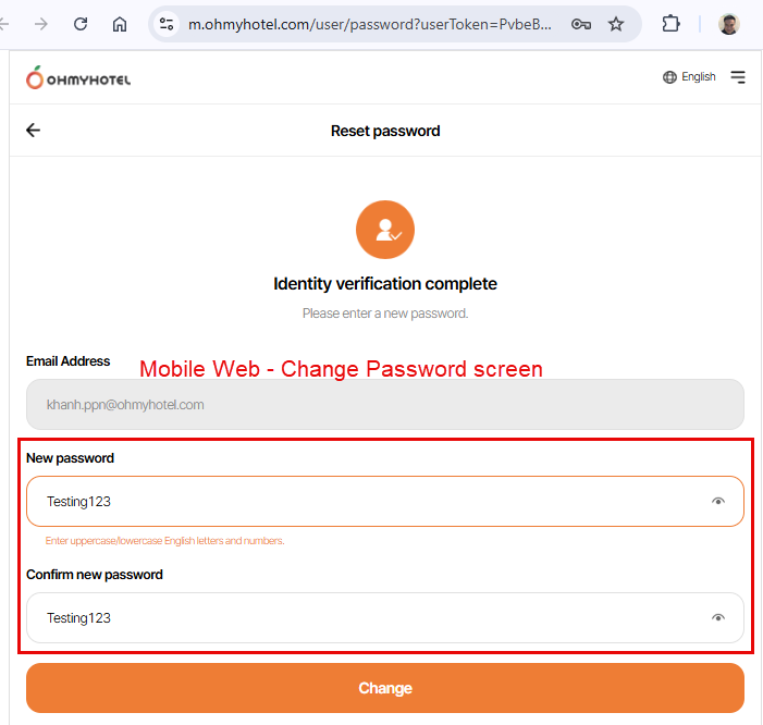 - Check eye icon displayed well in Change Password Screen screen and user can see their password after click on from web -> Passed