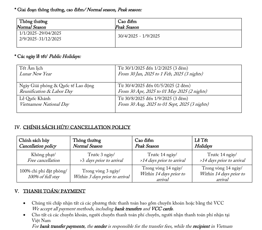 Hotel Peak Season and holiday