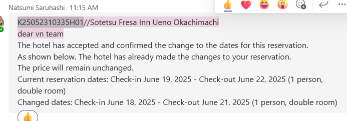 Reason : The guest request change date again due to booked wrong date.