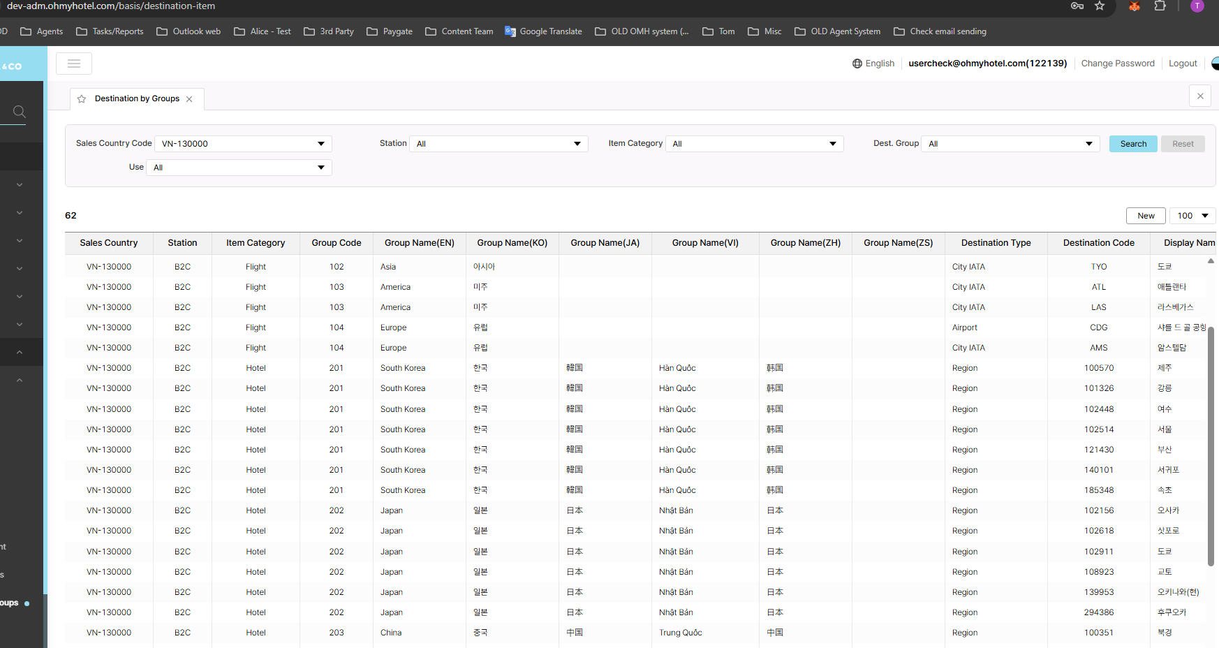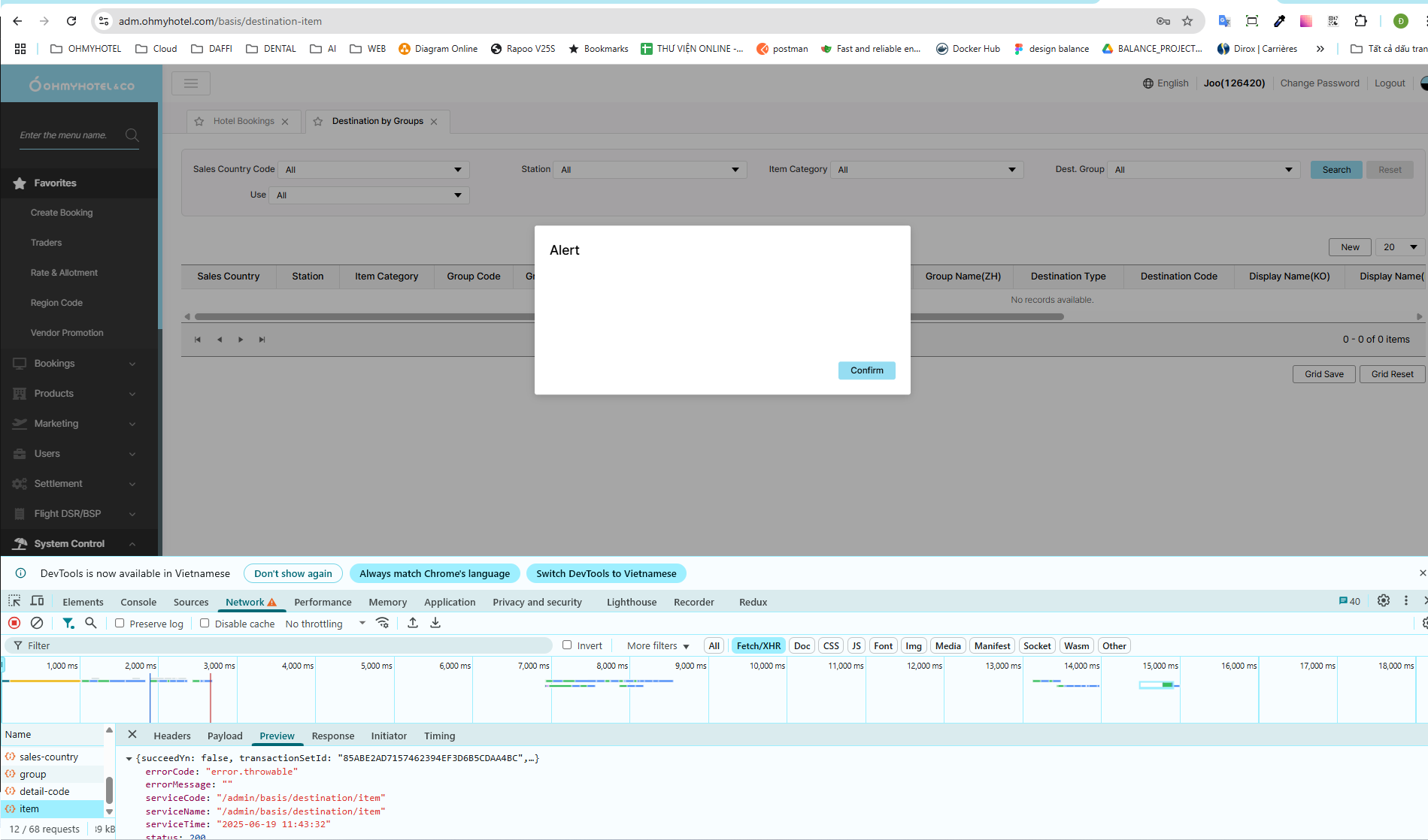 Destination By Group trên prod đang lỗi api