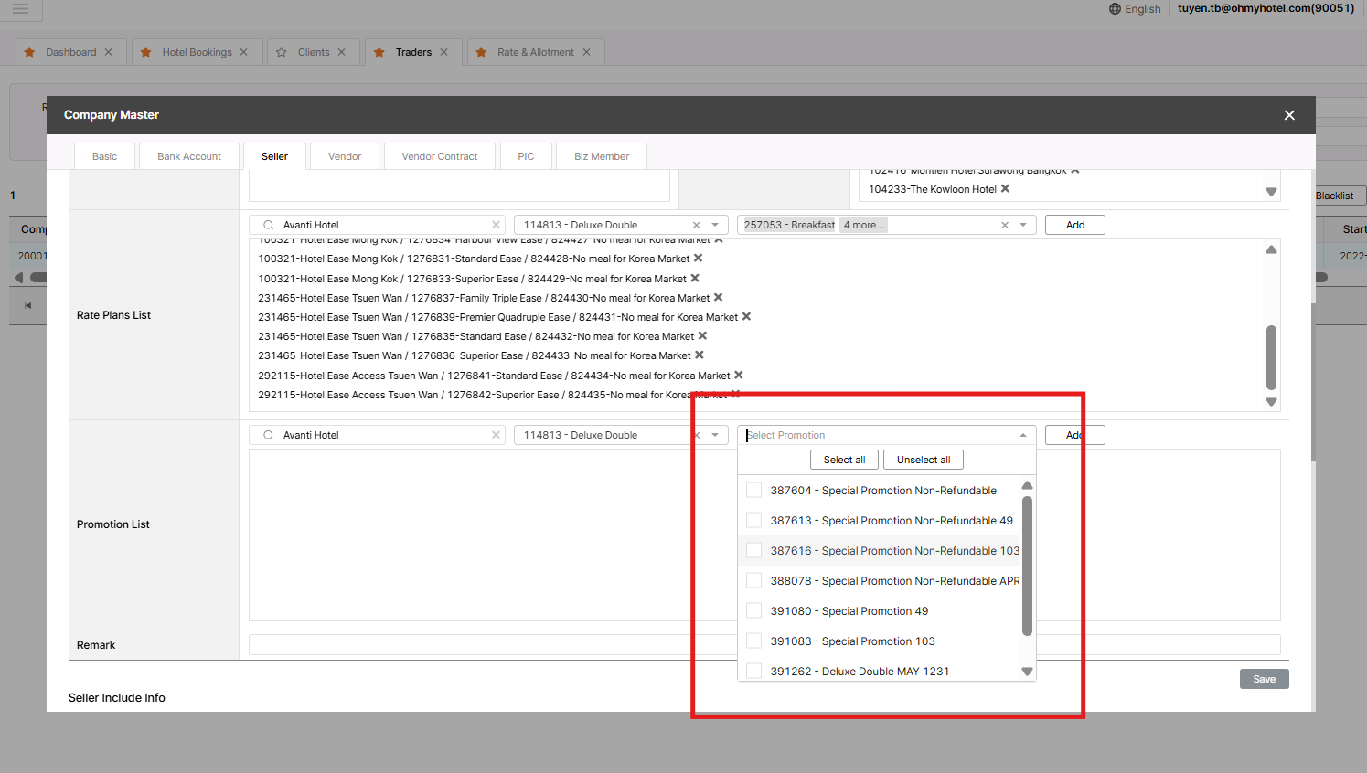 1. Add dropdown list have a checkbox, apply for rate plan and promotion also