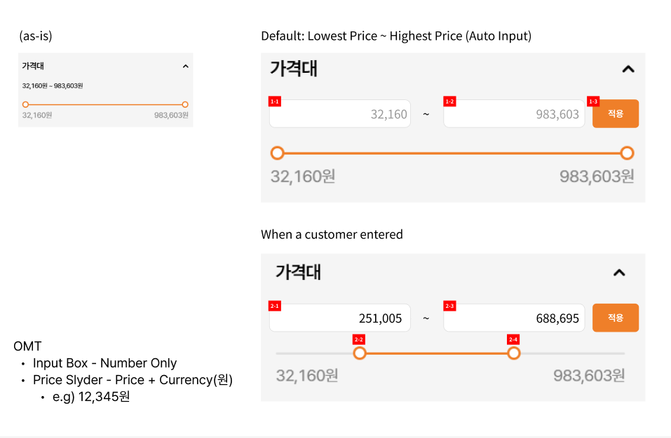 Related to OMH - 개선(improvement) #460: [PC] Search within Results > Price Range (상세검색 > 가격대) (15)완료성공(Resolve)Dante Le11/10/202511/12/2025
