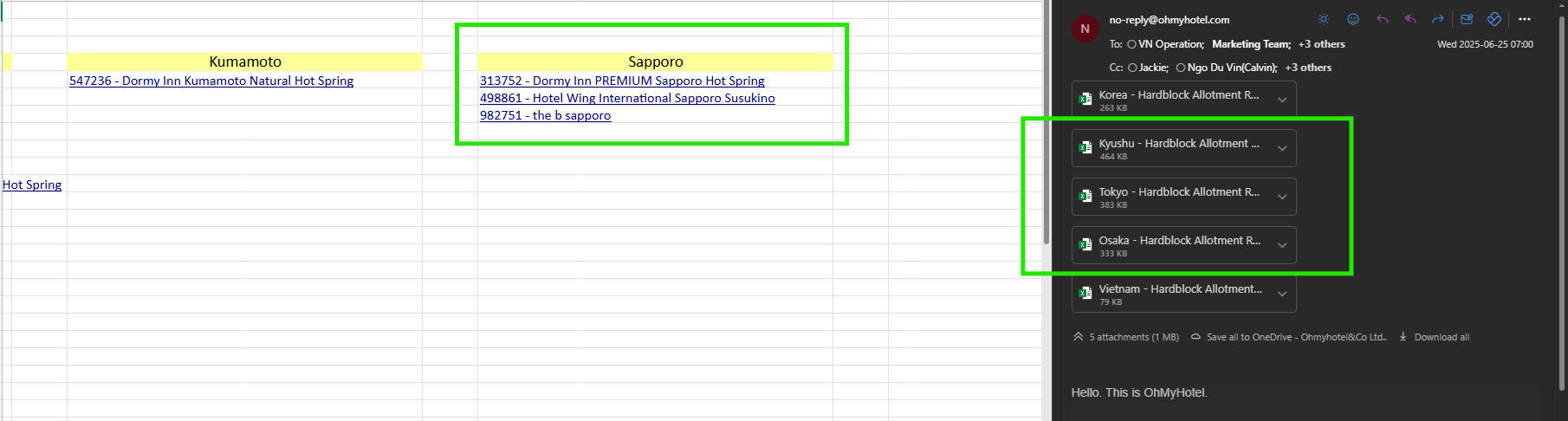 closed[VOC-Hardblock] Separate Saporo hotels to another sale volume report excel file