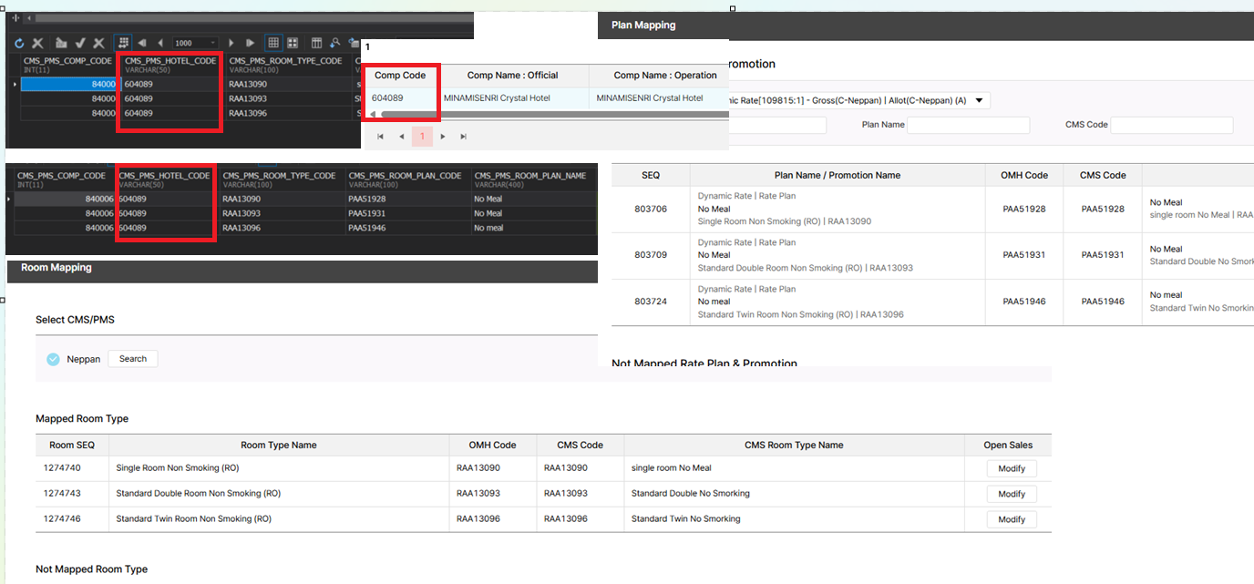 RoomTypes and Plans mapping is incorrect due to CMS mapping hotel code is Comp Code instead of hotel code. May there is a mistake when creating contract, the CMS/PMS Hotel Code is Comp Code not hotel code.