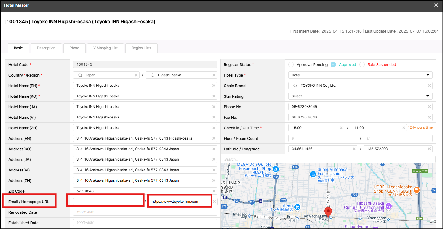 update info (email/homepage) for 1001415 - Amana Hotel Phan Thiet