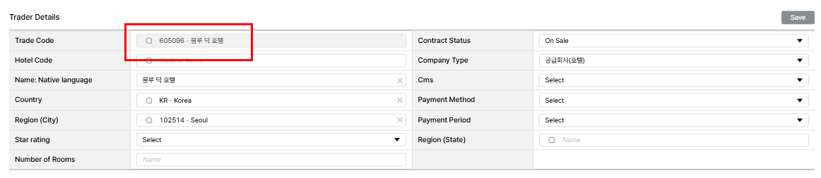 As-Is: 사용자가 trade code를 입력하지 않고 저장한 후 다시 들어오면, trade code 필드에 자동으로 어떤 코드가 표시됨