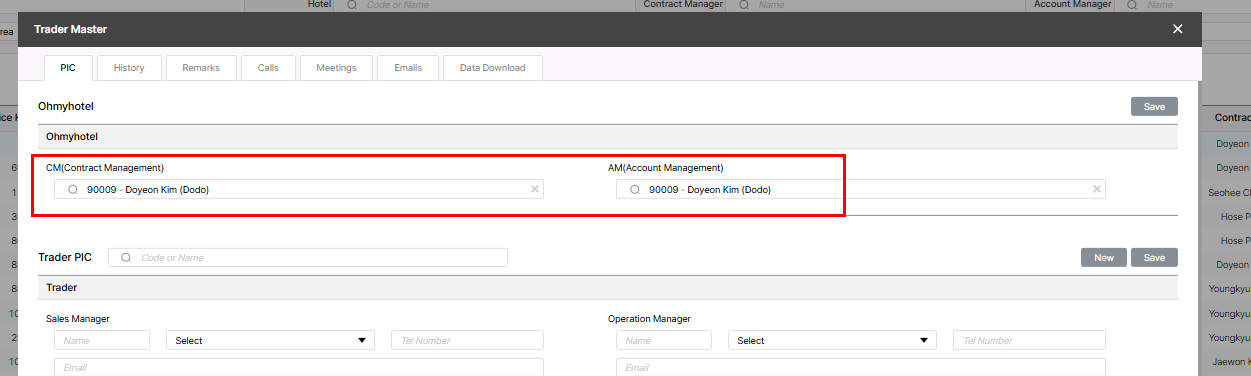 As-Is: 사용자가 특정 CMC/AM 담당자를 지정하고 저장했음에도, 다시 들어오면 PIC가 자동으로 'Dodo'로 표시됨